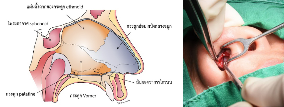 โดยทั่วไปมักไม่รุนแรงและพบน้อย อาจแบ่งความเสี่ยงจากการผ่าตัดโดยตรง ความเสี่ยงจากการดมยาสลบ และความเสี่ยงจากโรคประจำตัวของผู้ป่วยที่มีอยู่เดิม ตัวอย่างความเสี่ยง เช่น เลือดออก (เลือดกำเดาไหล) หายใจติดขัด ติดเชื้อหลังผ่าตัด มีสะเก็ดน้ำมูกแห้ง ๆ เกิดรูทะลุของผนังกั้นช่องจมูก (มองไม่เห็นจากภายนอก) อย่างไรก็ตามความเสี่ยงที่รุนแรงเช่น การมีดั้งจมูกยุบ น้ำไขสันหลังรั่วพบได้น้อยมาก ดังนั้นก่อนผ่าตัดจะมีศัลยแพทย์ วิสัญญีแพทย์ และทีมพยาบาลหรือบุคลากรที่เกี่ยวข้องจะให้คำแนะนำข้อมูลต่าง ๆ และเปิดโอกาสให้ผู้ป่วยซักถามข้อกังวลสงสัย เมื่อผู้ป่วยพร้อมและเข้าใจกระบวนการต่าง ๆ จะมีการลงนามในเอกสารแสดงความยินยอมเข้ารับการผ่าตัดต่อไป
