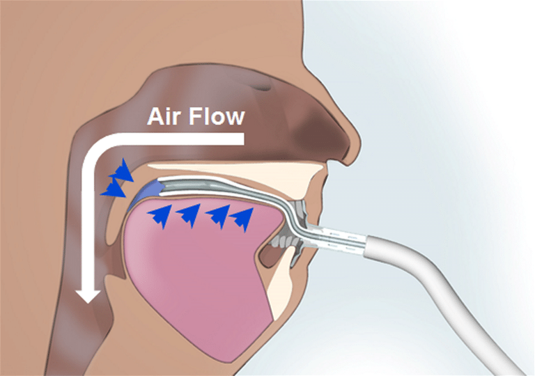 หลักการของ INAP therapy คือ จะมีการใช้เครื่องมือทำหน้าที่สร้างแรงดันลบในช่องปาก คล้ายสุญญากาศ จะดูดบริเวณเพดานอ่อนและโคนลิ้นมาด้านหน้ามากขึ้น ป้องกันลิ้นและเพดานอ่อนหย่อนตกไปอุดกั้น และลดการสั่นสะเทือนของเนื้อเยื่อบริเวณดังกล่าว โดยขณะนอนหลับให้ผู้ป่วยใส่ชิ้นส่วนของอุปกรณ์อมในปาก (เป็นวัสดุพลาสติกทางการแพทย์ที่ปลอดภัย) ทำให้เสียงกรนลดลงและการหยุดหายใจน้อยลง
