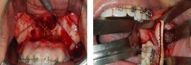 2. ผู้ป่วยจะมีเหล็ก เฝือกสบฟัน และมียางมัดฟัน ระหว่างนี้ช่วงแรกผู้ป่วยอาจได้รับน้ำและอาหารเหลว โดยหยอดทางกระบอกฉีดยาทางปาก และเมื่อปากเริ่มยุบบวมจึงให้ดูดอาหารเหลวทางหลอด ทั้งนี้ควรงดเคี้ยวอาหารเป็นระยะเวลาอย่างน้อย 6 สัปดาห์ จนกว่าจะเอายางมัดฟันออก จึงรับประทานอาหารอ่อน เช่น โจ๊ก ข้าวต้ม ไข่ตุ๋น หรืออื่น ๆ